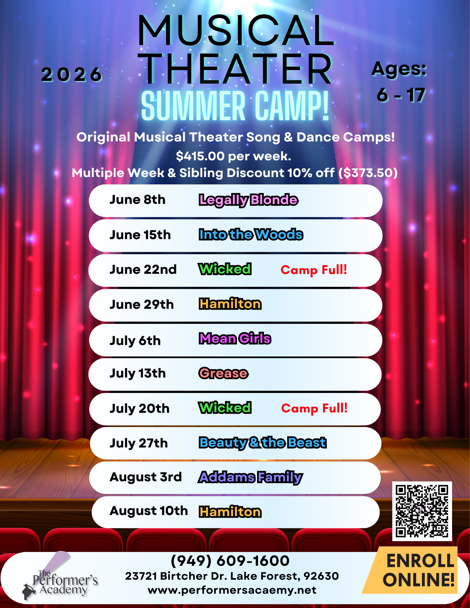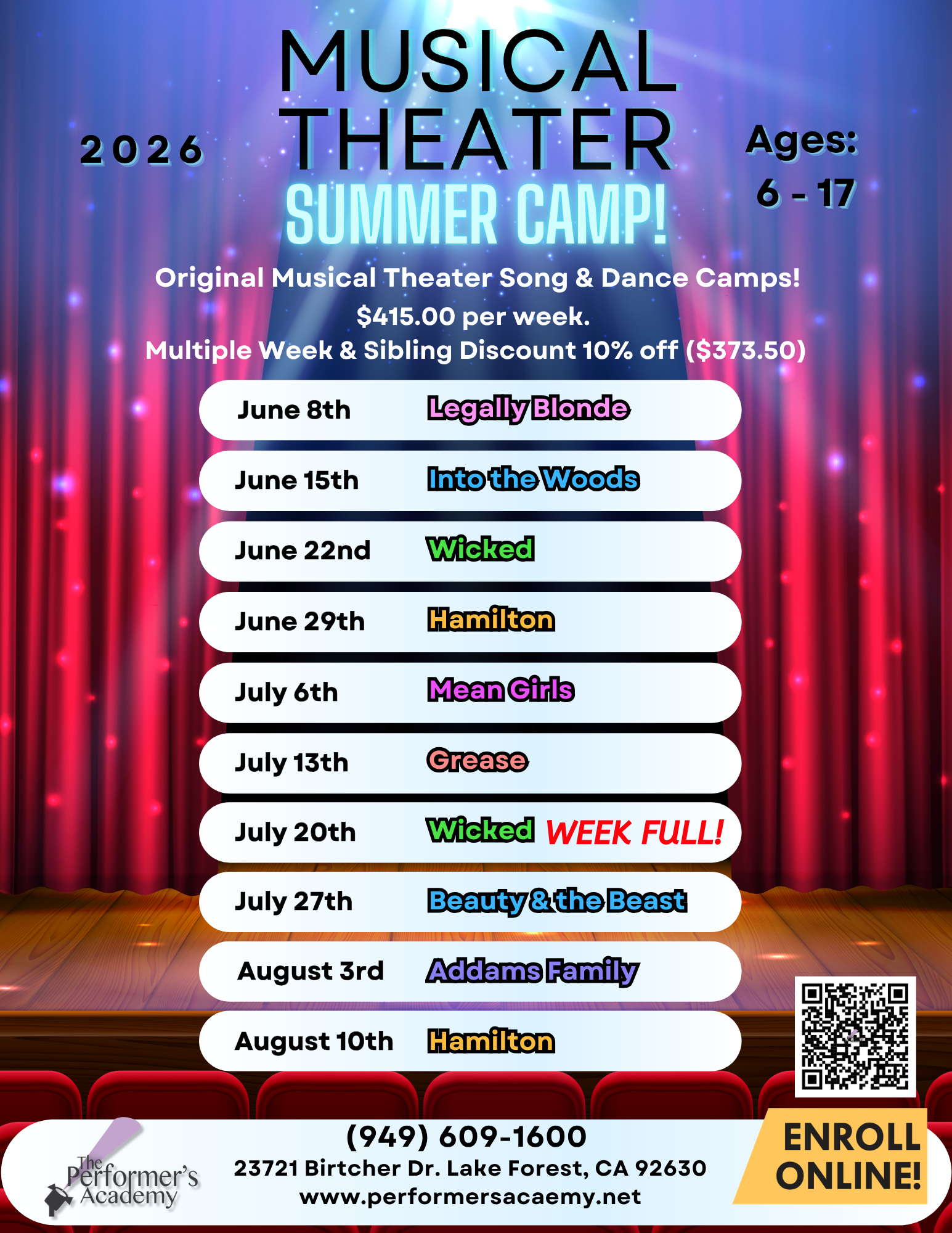 Please note: All sales are final—no refunds. If your child is unable to attend, your payment will be credited toward future camps at The Performer’s Academy.